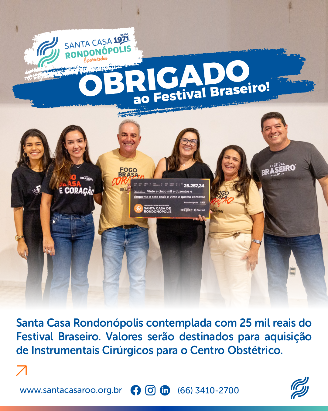 Agradecemos aos organizadores do Festival bem como a todos os colaboradores e voluntários que atuaram no evento em prol da Santa Casa Rondonópolis.