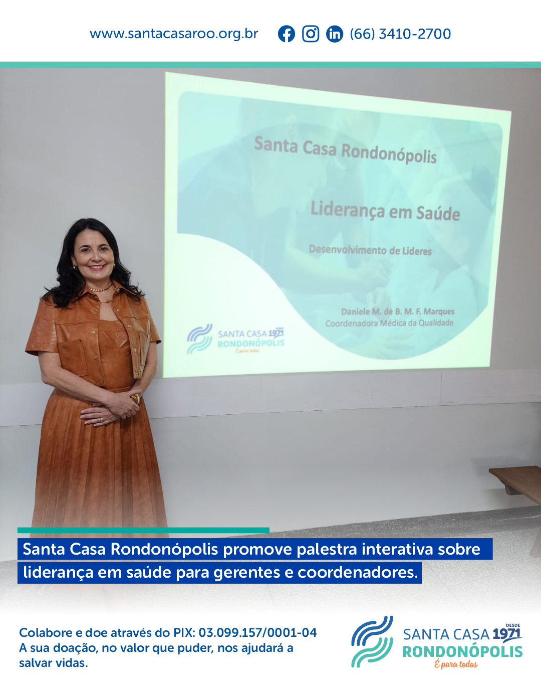 No dia 01 de novembro de 2024, gerentes e coordenadores participaram de uma palestra interativa sobre liderança em saúde, com a Dra. Daniele Monteiro, Médica Intensivista e Coordenadora Médica da Qualidade. O encontro proporcionou uma troca rica de experiências sobre as melhores práticas de liderança no setor.
