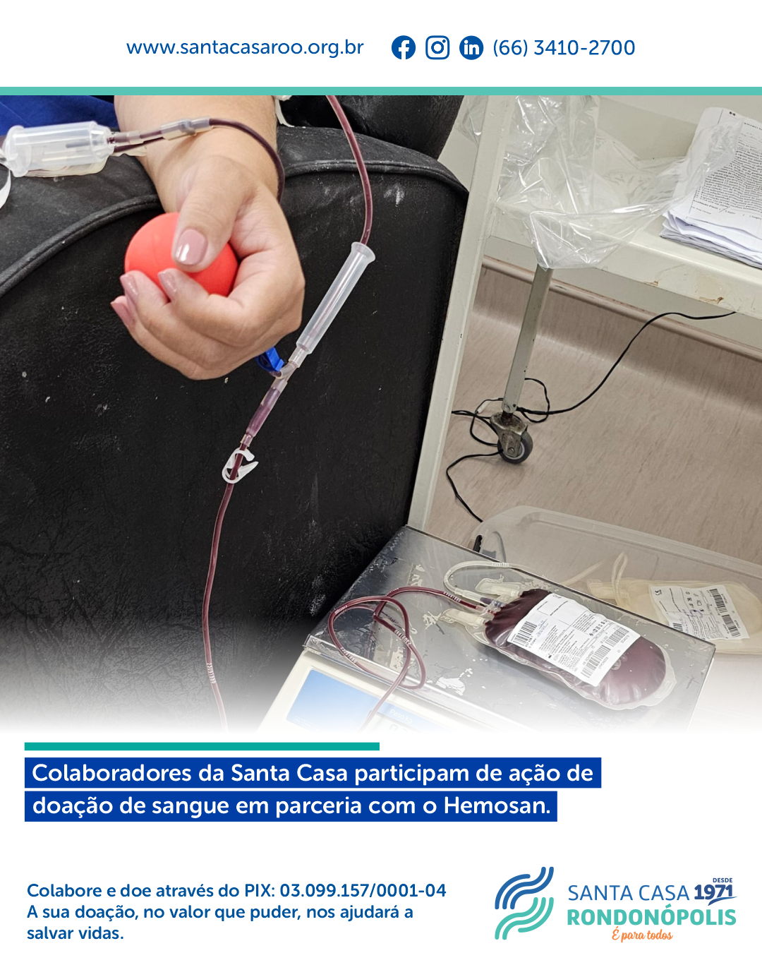 Na segunda-feira, 23/12, realizamos com grande sucesso a campanha de doação de sangue em parceria com a Hemosan. A iniciativa contou com o apoio e a solidariedade dos nossos colaboradores, que se uniram para contribuir com o Banco de Sangue do Mato Grosso. Foram momentos de muita generosidade, em que cada doação se traduziu em esperança para quem mais precisa.
