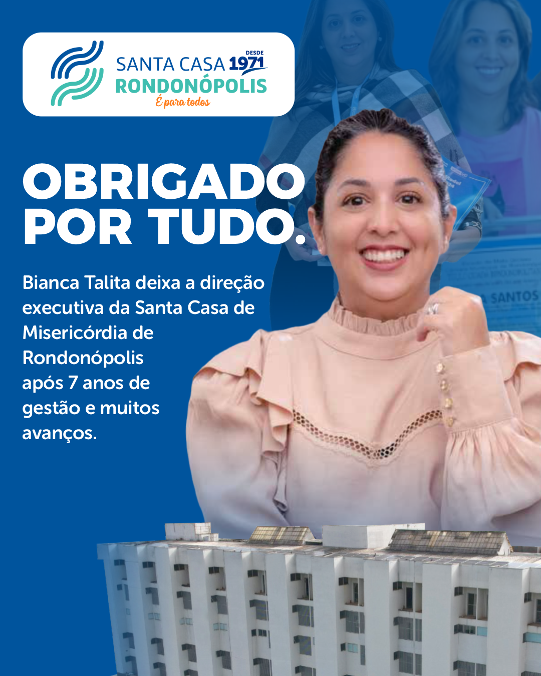 Hoje, a trajetória de Bianca Talita serve como exemplo de uma gestão que não apenas supera desafios, mas se adapta a eles, transformando dificuldades em oportunidades de crescimento e melhoria. Ela é uma liderança de enfrentamento e humildade, comprometida em fazer da saúde pública um setor mais forte, humano e acessível para todos. Porém, por motivos particulares a Diretora Executiva Bianca Talita, confirmou seu pedido de afastamento da Direção da Santa Casa de Rondonópolis, em caráter irreversível.