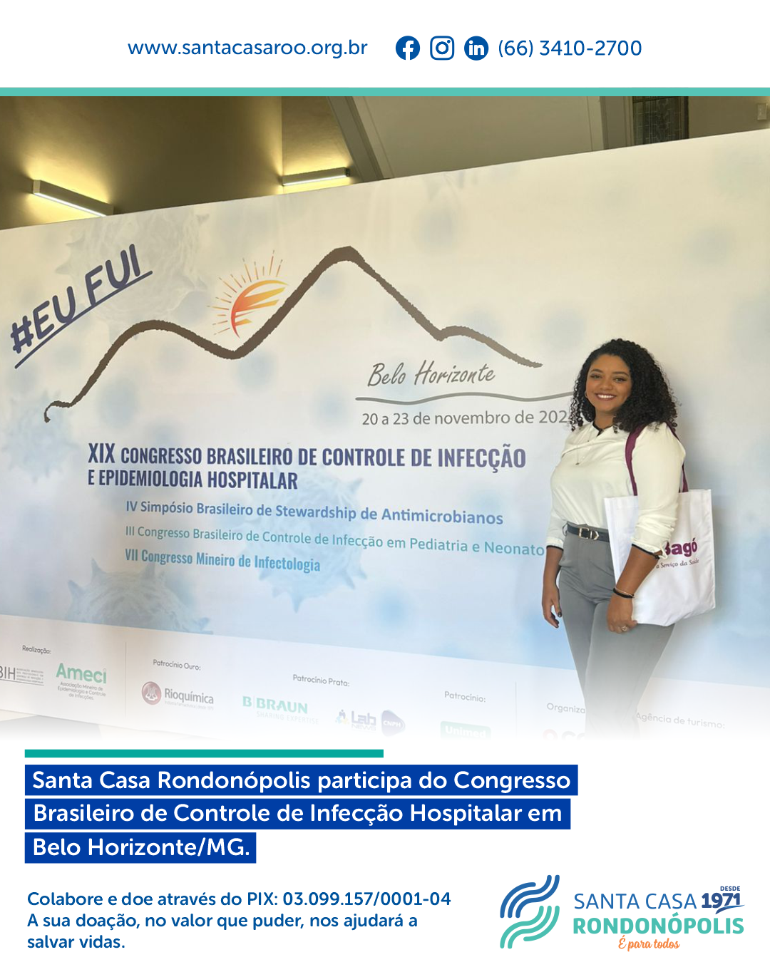 A Coordenadora do Serviço de Controle de Infecção Relacionada à Assistência à Saúde (SCIRAS) da Santa Casa de Rondonópolis, Pamela Almeida, teve a honra de participar do XIX congresso brasileiro de controle de infecção e epidemiologia hospitalar, considerado um dos eventos mais relevantes na área de controle de infeção hospitalar. Durante o congresso, foram proporcionados dias de troca de conhecimento, atualizações científicas e debates sobre as melhores práticas para a segurança dos pacientes e a redução de infeções relacionadas à assistência à saúde.