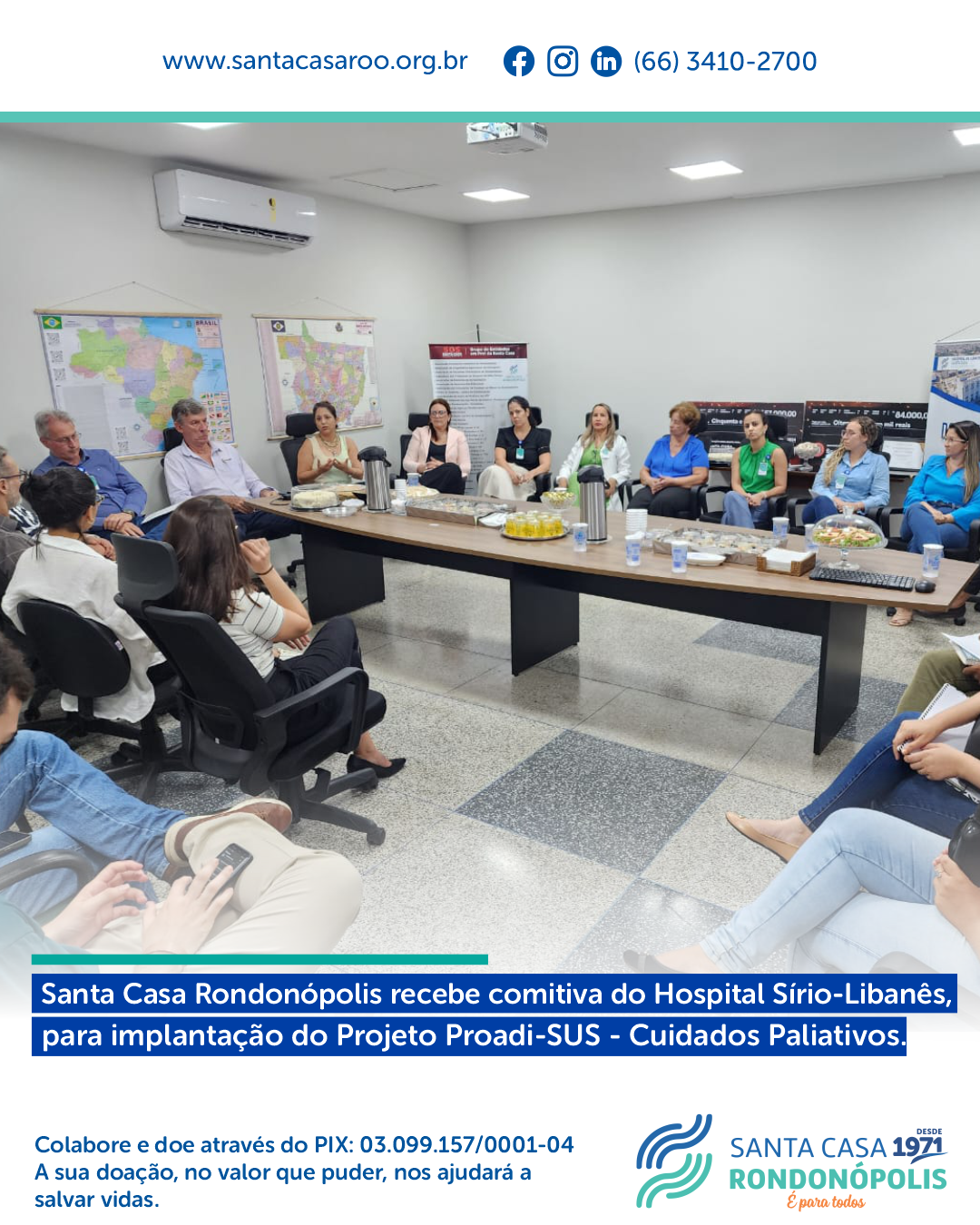 Na tarde de segunda feira, 04 de Novembro, a Santa Casa Rondonópolis recebeu a comitiva do Hospital Sírio-Libanês que está em Rondonópolis visitando os parceiros do Projeto Proadi-SUS – Cuidados Paliativos no SUS.
