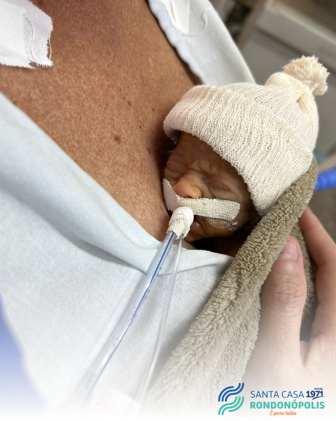 Esse na verdade é um procedimento realizado aqui na Santa Casa Rondonópolis para aumentar o cuidado humanizado aos pequenos pacientes. Parece uma pequena ação, mas traz impactos positivos na recuperação do bebê.